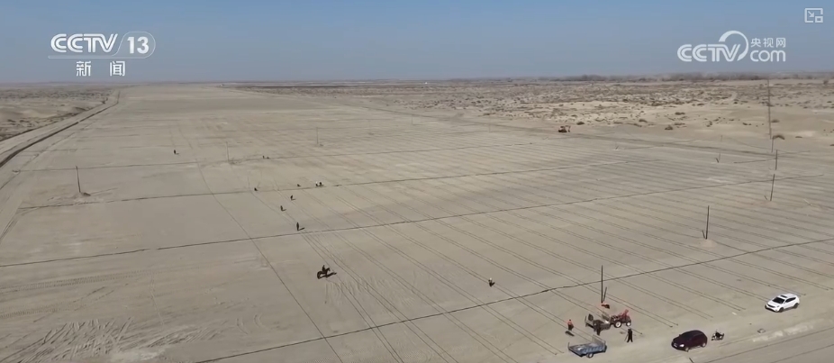 在新疆喀什岳普湖县巴依阿瓦提乡,村民们正忙着铺设滴灌带。随着流动沙丘被推平整治,一条300米宽的梭梭林生态隔离带已现雏形。在滴灌带铺设、水泵安装、电网等基本工作完成后,这里就可以开始种植梭梭。