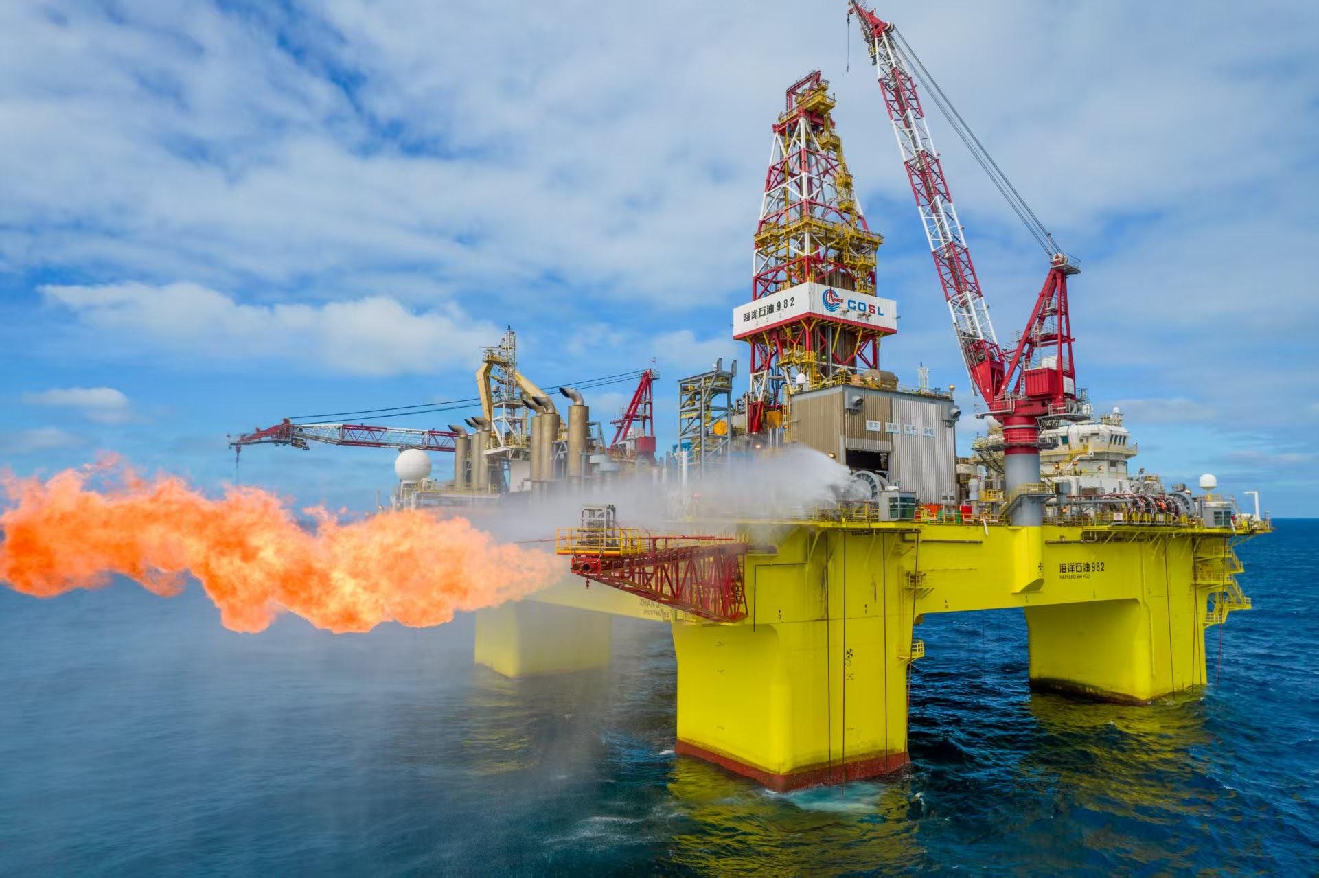中国海油钻井平台在海上作业。