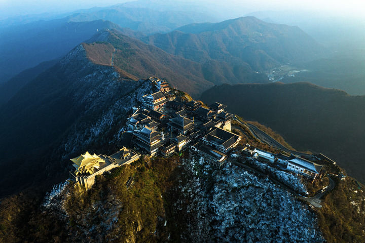 循着山势往上,蜿蜒曲折的盘山公路两边,层峦叠翠,云海蒸腾,杜鹃灼灼,古木参天。公路尽头,视野陡然开阔,一座佛寺金顶在云雾中若隐若现,恍若仙境。寺院入口,雕工精细的青石门楣上刻着“大慈恩寺”,两侧是“汉东地阔无双院”“楚北天空第一峰”的联语。这座寺院与武汉宝通禅寺同源共脉,却鲜少张扬。