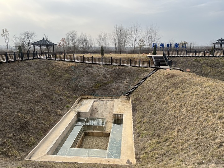记者走访了2018年发掘的义地岗墓群枣树林墓地。登上这个长条形的岗地,看到3处已发掘的大墓保留着墓葬遗址,现场有专人看护,并搭起房顶防止雨水渗漏、墓壁塌陷。其中相邻的两处分别是曾公求(田求)及其夫人渔、曾侯宝及其夫人芈加的合葬墓。