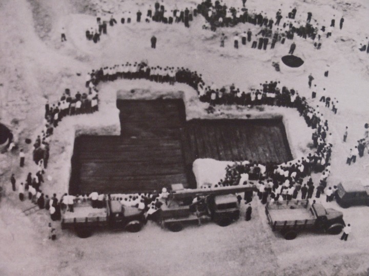 位于曾都区城西的擂鼓墩是又一处密集分布的战国时期曾国高等级贵族墓群,曾侯乙墓就静静地躺在这里的一处坡岗上。俯瞰深达13米的墓葬原址,不规则多边形的椁室形制分东、中、北、西四室,由底板、墙板、盖板共171根巨型长方梓木和榉木垒迭套接而成。