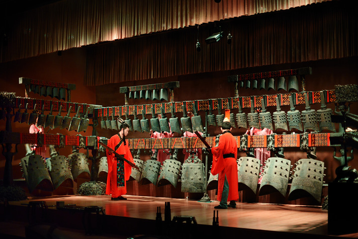 讲解员介绍,这些原件至今仅演出过3次,每一次都轰动中外。而博物馆演奏厅内以其复制件演奏的中外名曲,场场都让听众为这“华夏正音”的悦耳之声而陶醉。其中的十弦琴、五弦琴、排箫和篪均是失传已久的古老乐器。比如排箫,就是比曾侯乙晚约百年的屈原在《九歌·湘君》中写的“吹参差兮谁思”的“参差”,是用13根长度依次递减的细竹管排列而成,其形在汉以后,仅在石刻、壁画里出现过。
