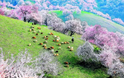 这是大自然独有的馈赠。这片广袤的土地上,孕育着壮观的杏树群落,更有14世纪遗留下来的原始野杏林。每年3月下旬,从吐鲁番盆地到帕米尔高原再到伊犁河谷,杏花次第开放。它耐旱、抗寒、不惧贫瘠,以顽强的生命力将根系深深扎进大地,绽放出明艳繁茂、纵情热烈的花朵。