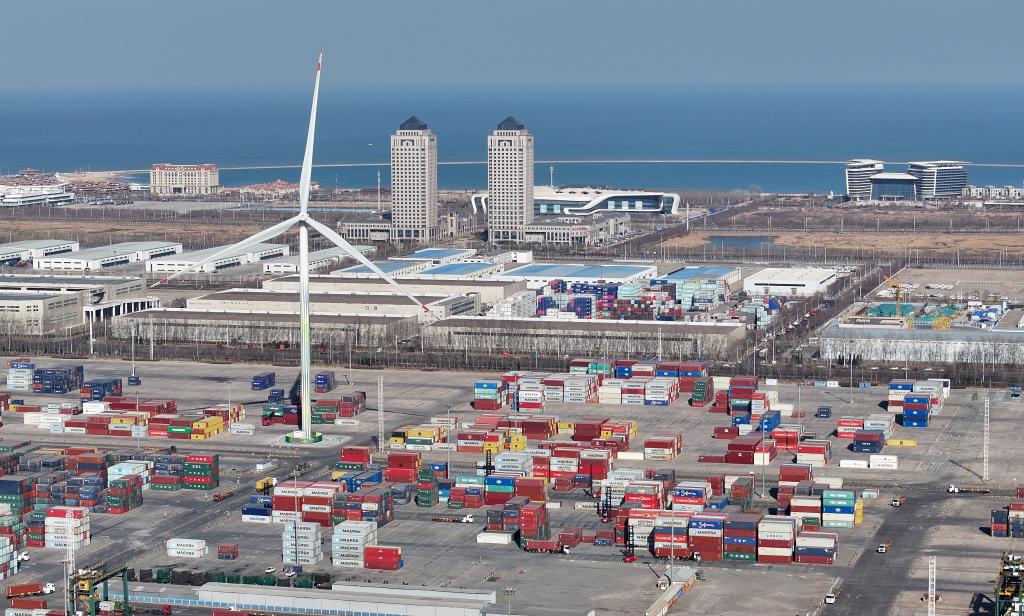 2024年3月20日拍摄的天津自贸试验区东疆片区一景(无人机照片)。新华社记者赵子硕 摄