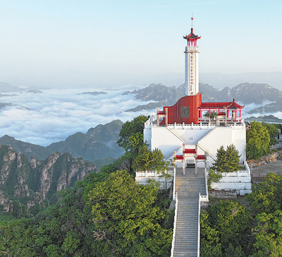 远眺狼牙山五勇士纪念塔。易县狼牙山景区管委会供图