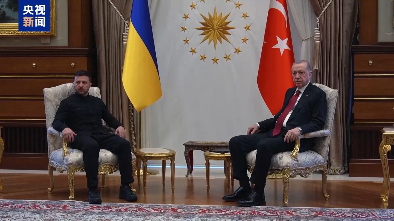 总台记者 魏然:乌克兰总统泽连斯基携乌方官员15日中午飞抵土耳其首都安卡拉,随后在下午与土耳其总统埃尔多安进行了近3个小时的会谈,两人还就下一阶段的俄乌对话展开讨论。在结束与埃尔多安的会面后,泽连斯基在新闻发布会上表示,决定当天派出乌方代表团前往伊斯坦布尔,将由乌克兰国防部长乌梅罗夫率团,泽连斯基本人则不会出席谈判。