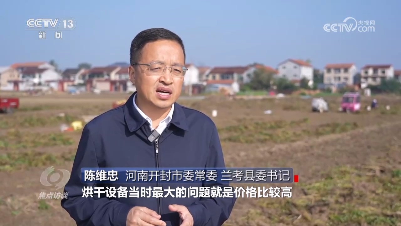 河南开封市委常委、兰考县委书记陈维忠:“烘干设备当时最大的问题是价格比较高,一般在1毛左右,后来我们统一谈,给烘干的优惠政策,就压到(每斤)5分,让老百姓接受,我们也(给农机企业)补贴一点,给点政策。”