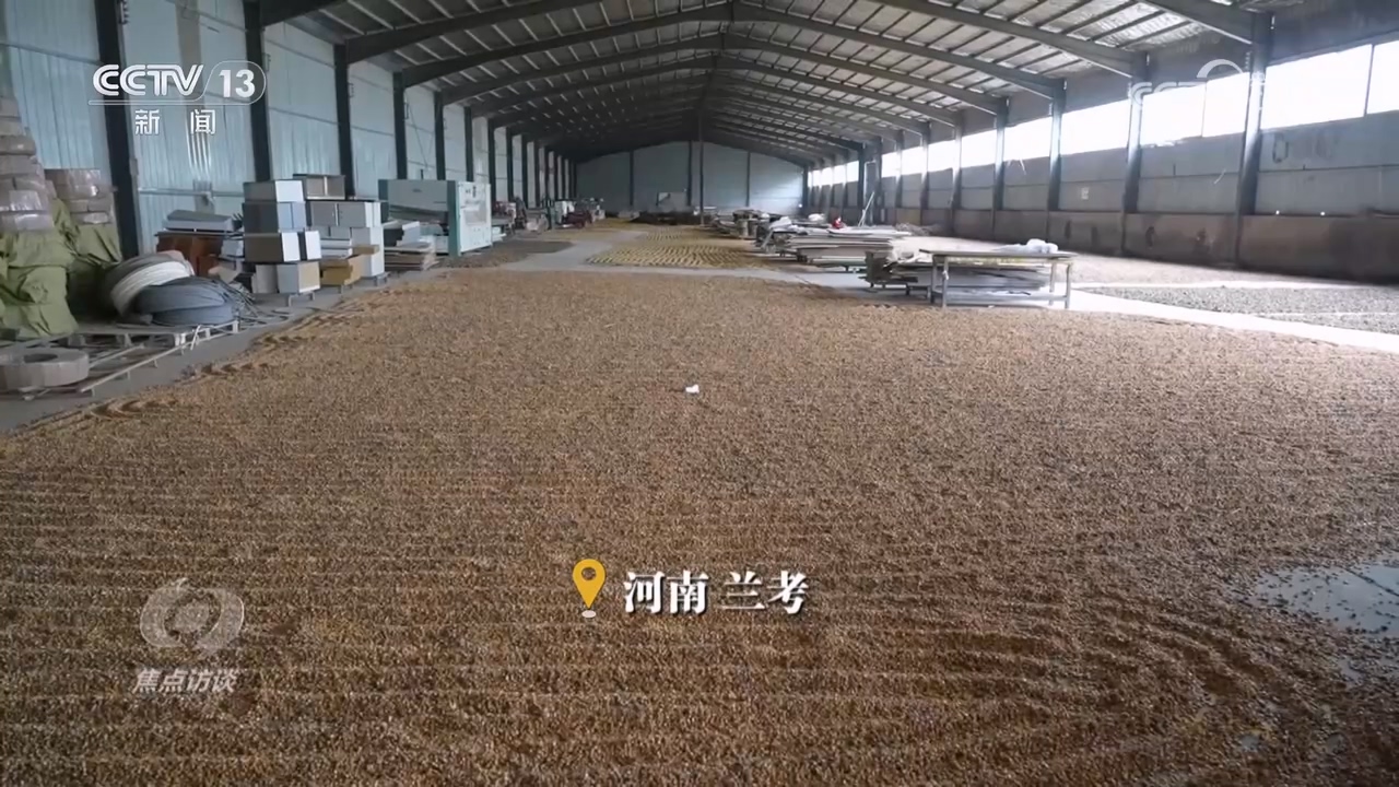 兰考县提前组织各乡镇临时腾出来厂房、仓库、学校空地等场所,做粮食晾晒场,让种散粮的农户们抓紧晾晒粮食。