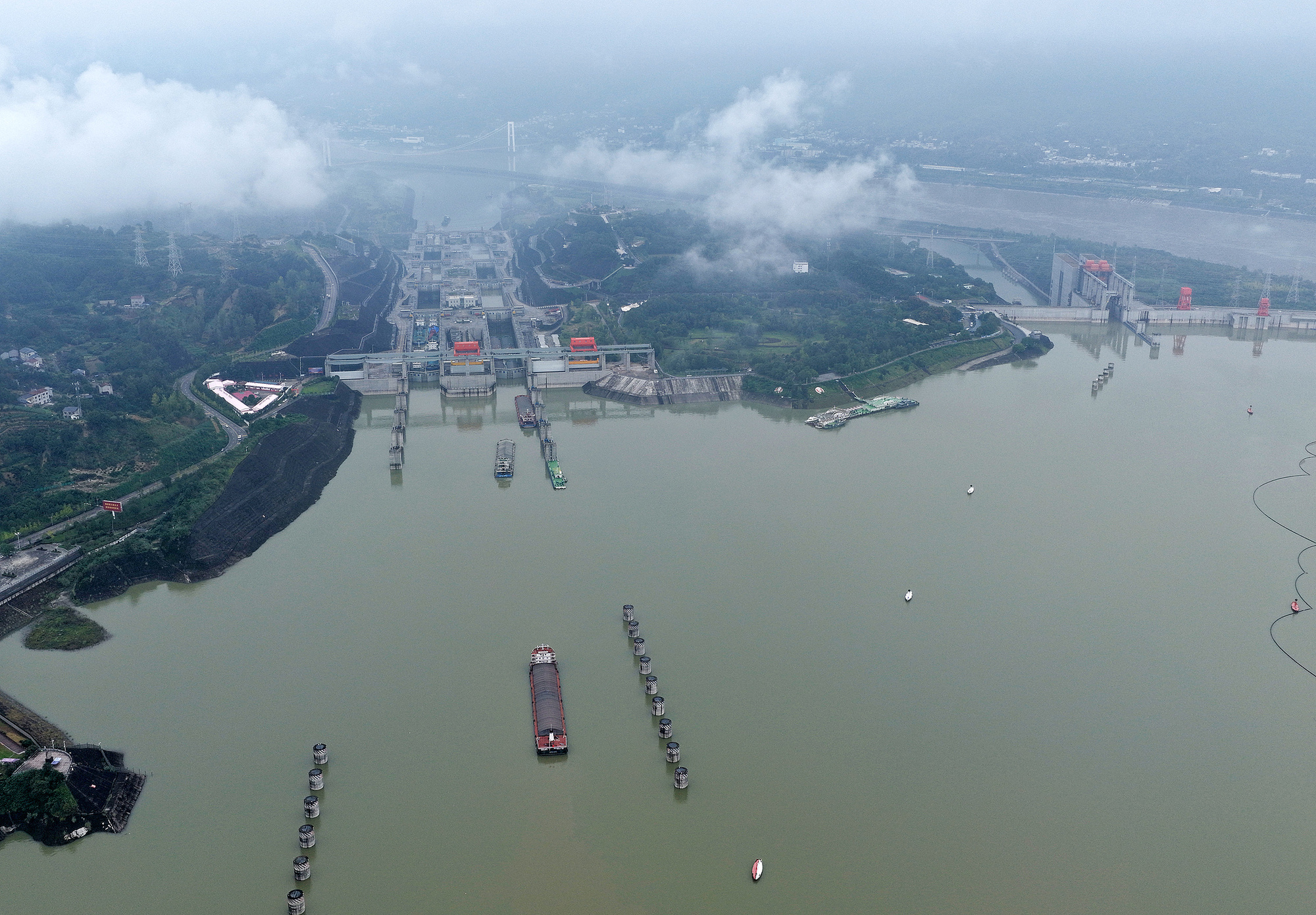 湖北宜昌,船舶有序通过三峡双线五级船闸