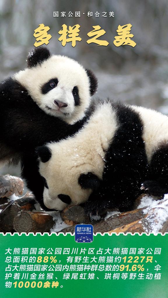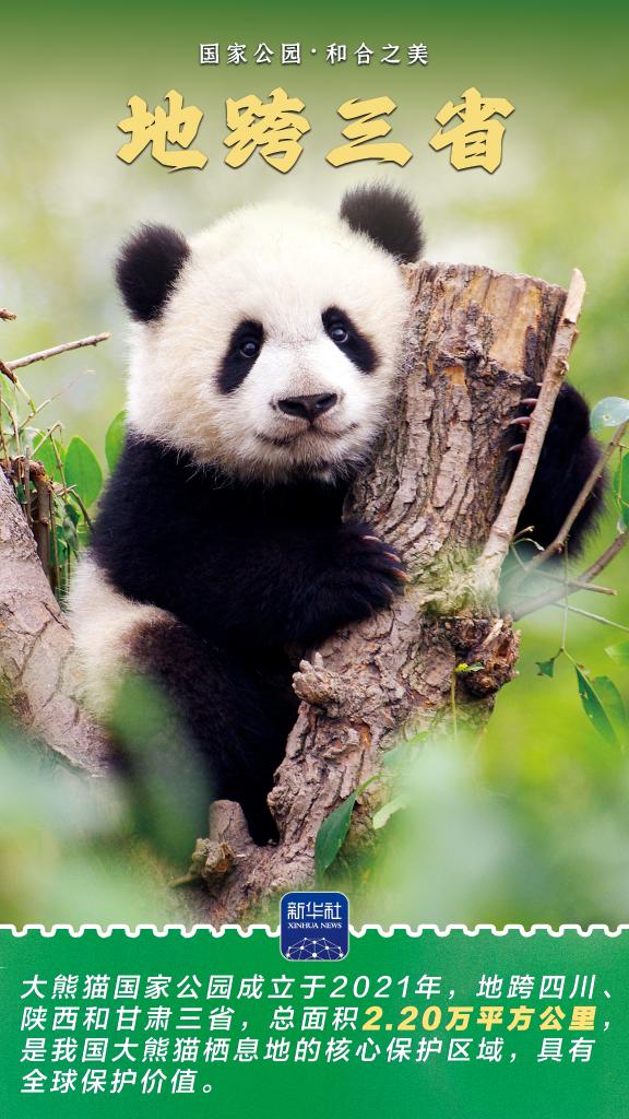憨态百出的神态、撒娇卖萌的“囧样”,配上黑白清晰的“滚滚”身材,“国宝”大熊猫萌化了无数粉丝的心。地跨川陕甘三省的大熊猫国家公园,是全球大熊猫的主要栖息地。这里不仅保护了70%以上的野生大熊猫,还伞护着1万余种野生动植物物种。让我们跟随这组海报,一起领略“国宝”家园的“豪华气派”与萌宠生机。