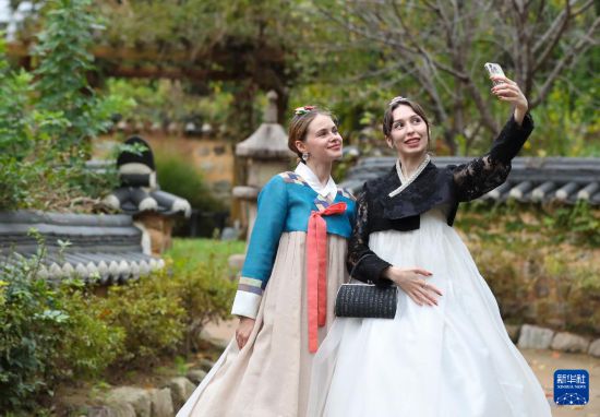 10月16日,游客在韩国庆州的景区校村附近拍照。新华社记者 姚琪琳 摄