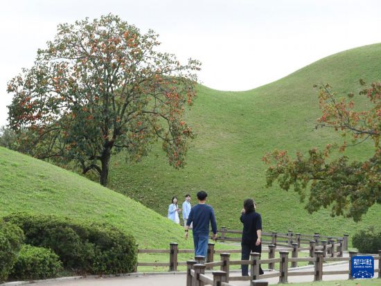 10月17日,游客在韩国庆州的大陵苑一带参观。新华社记者 姚琪琳 摄
