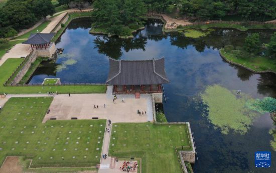 这是9月21日拍摄的韩国庆州景点东宫和月池(无人机照片)。新华社记者 姚琪琳 摄