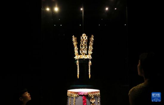 8月1日,游客在韩国庆州博物馆参观新罗时代的文物金冠。新华社记者 姚琪琳 摄