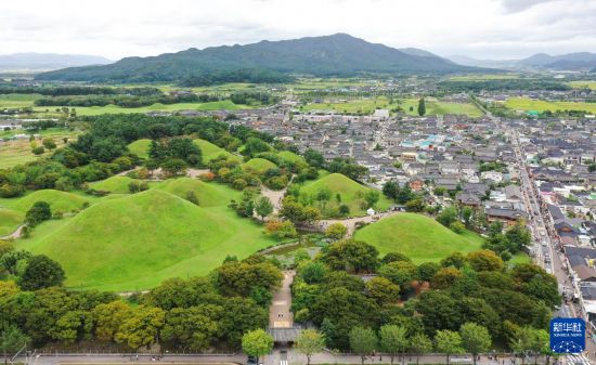 这是9月21日拍摄的韩国庆州大陵苑一带(无人机照片)。新华社记者 姚琪琳 摄