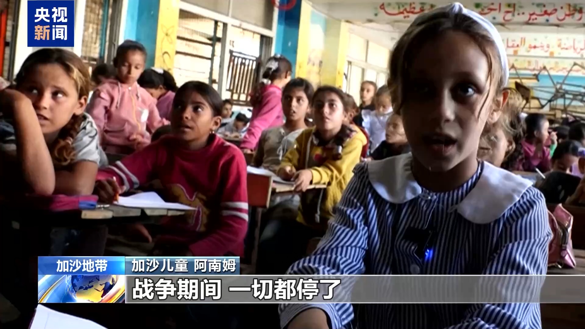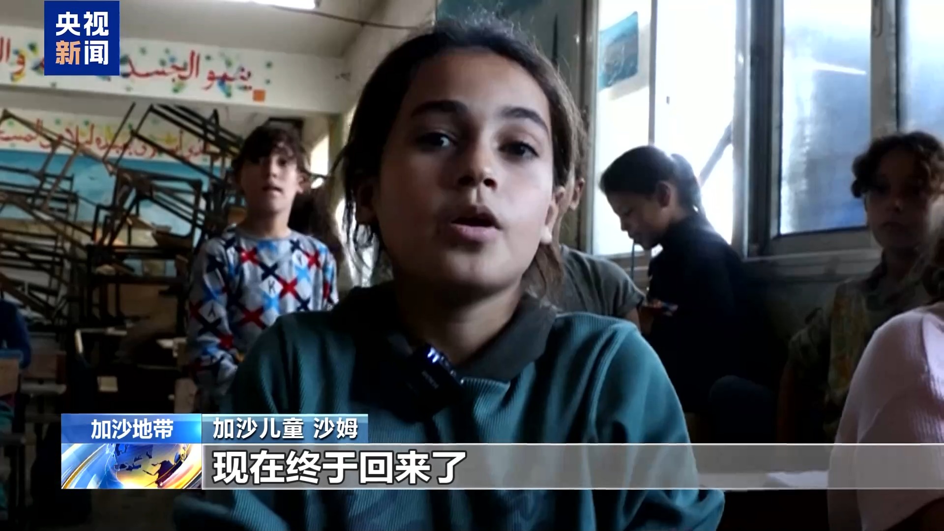 加沙儿童 阿南姆:战前,我们很开心。早上六点去学校,做早操,老师们会和我们一起。战争期间,一切都停了。但现在我们又回来了。