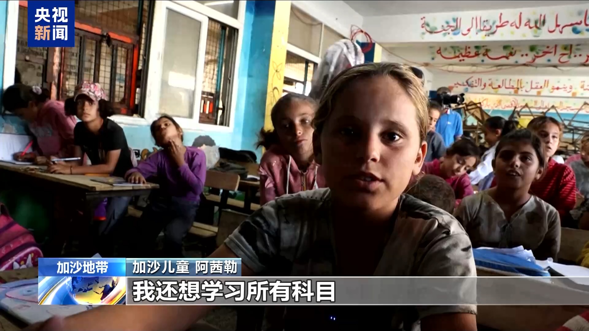 加沙儿童 阿茜勒:我真的很想回到学校,学习、玩耍、参加早操,我还想学习所有科目,不是像现在这样只学阿拉伯语、英语和数学。
