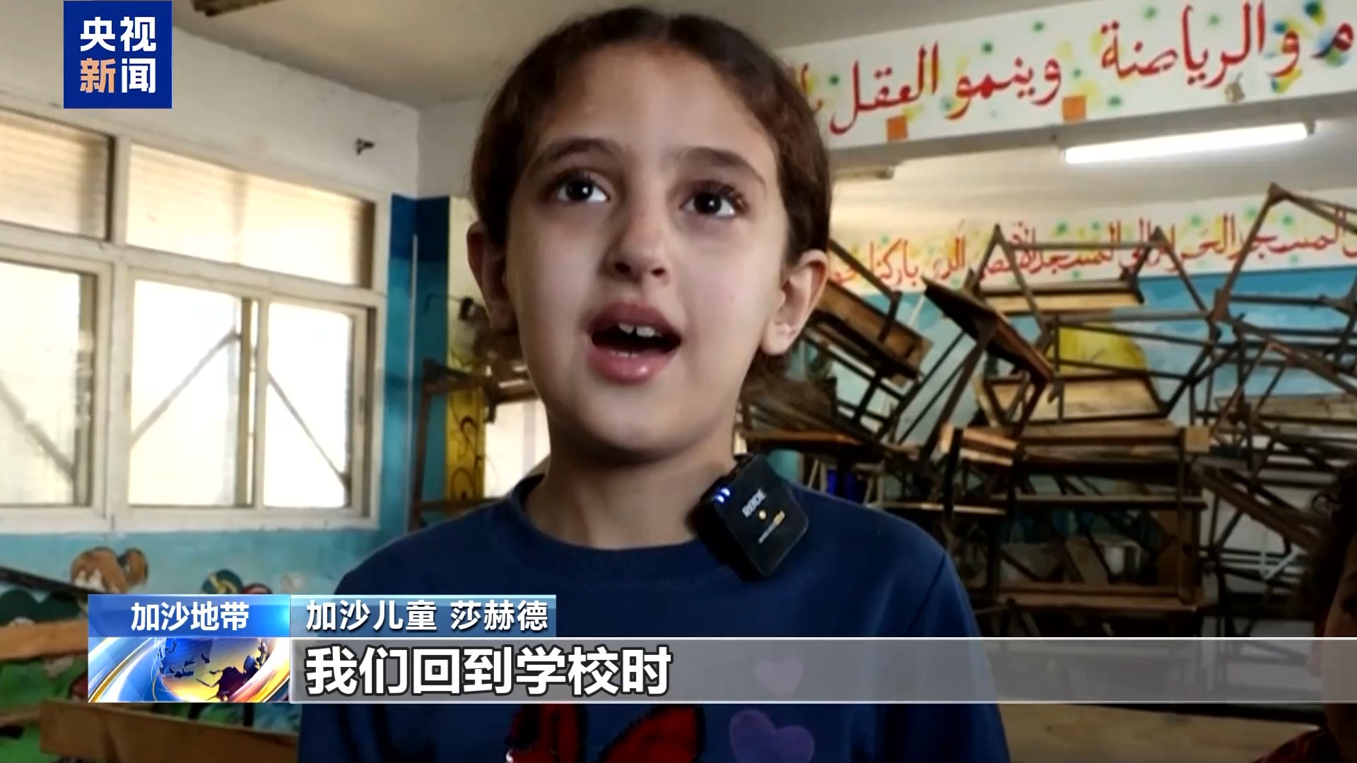 加沙儿童 莎赫德:我们回到学校时,发现它已经被毁了,里面还住着很多流离失所的人。