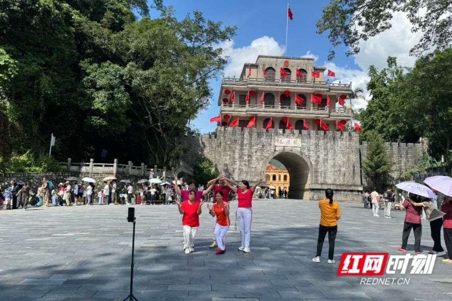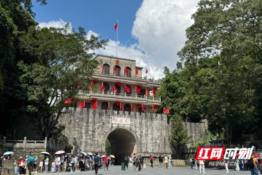 红网时刻新闻10月1日讯(记者 龚子杰 陈雅如)10月1日,国庆中秋长假首日,广西友谊关景区游人如织。这座始建于汉代的千年雄关巍然屹立于中越边境,两侧城墙如巨龙蜿蜒于翠绿群山之间,一块块斑驳砖石都镌刻着南疆国门的沧桑与荣耀。