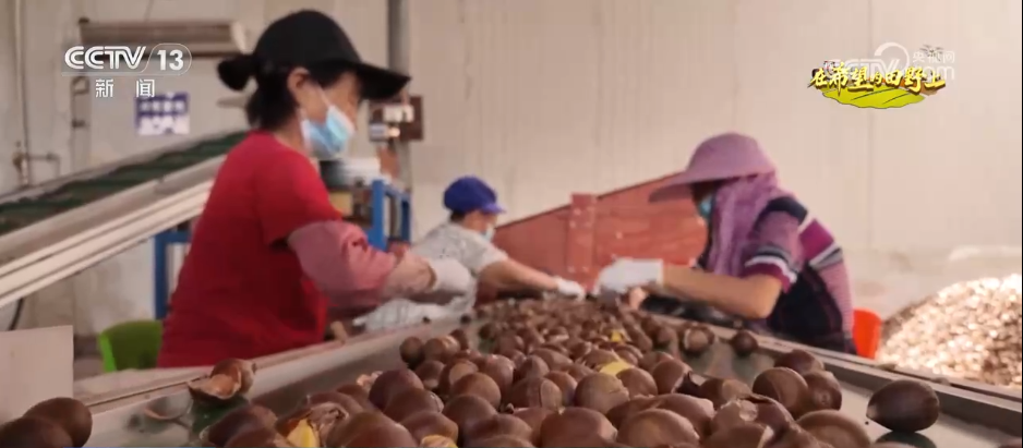 随着锥栗的丰收,加工企业也忙碌了起来。在一家工厂记者看到,工人师傅们正在对锥栗进行分选、筛检、加工,厂内一片繁忙的景象。