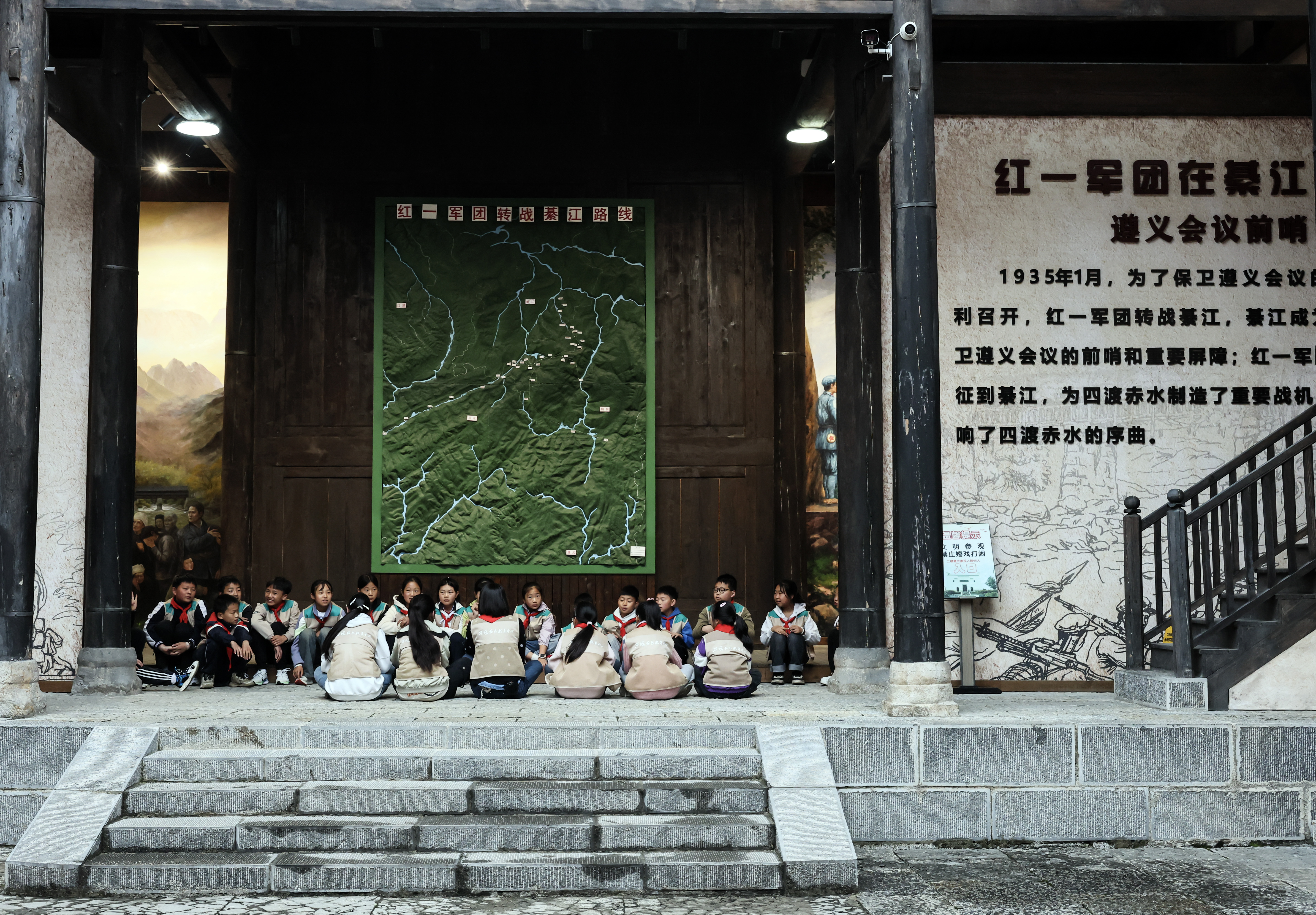 在重庆市綦江区石壕镇,学生们在红一军团司令部旧址参加研学活动。兰红光 摄