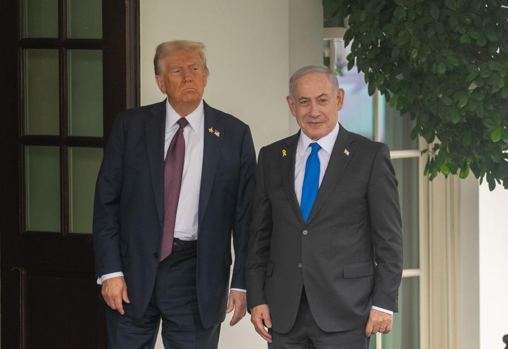 9月29日,在美国首都华盛顿白宫,美国总统特朗普(左)迎接到访的以色列总理内塔尼亚胡。新华社记者胡友松摄