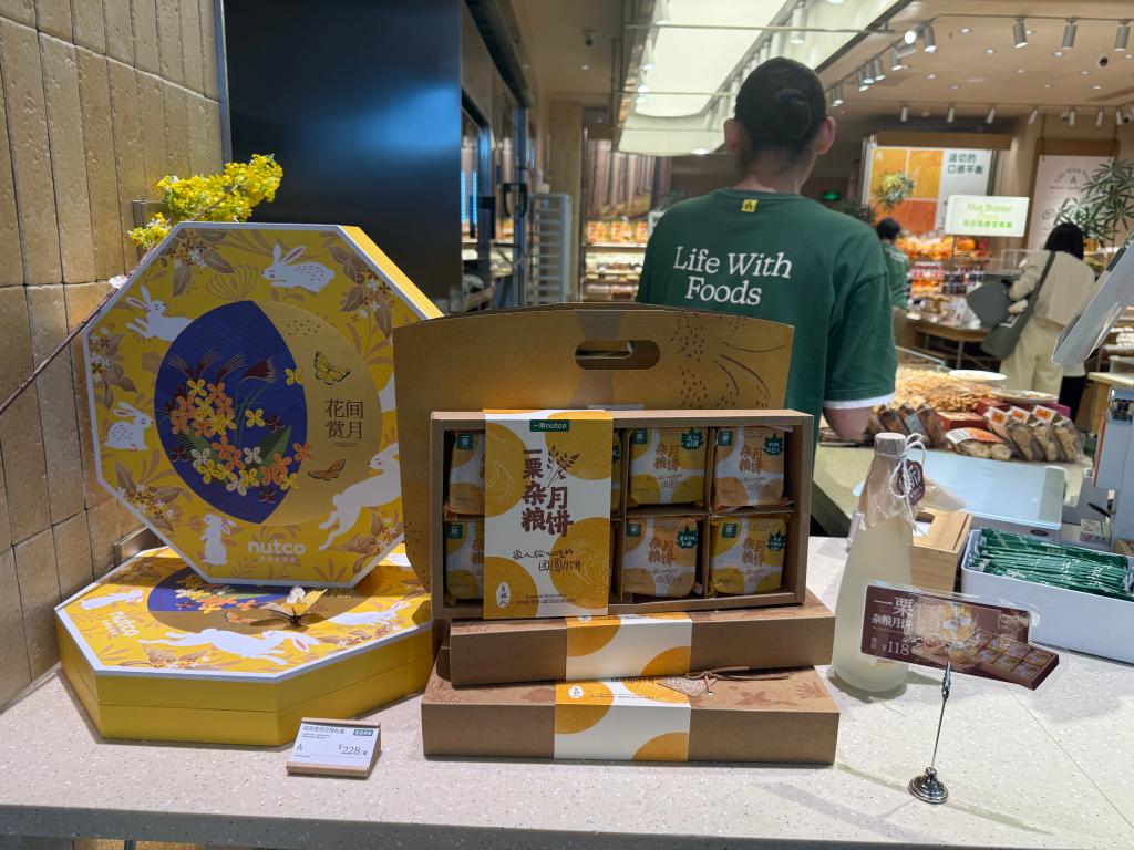 在沈阳市浑南区一家门店中,杂粮月饼被摆放在显眼位置。新华社记者 洪可润 摄