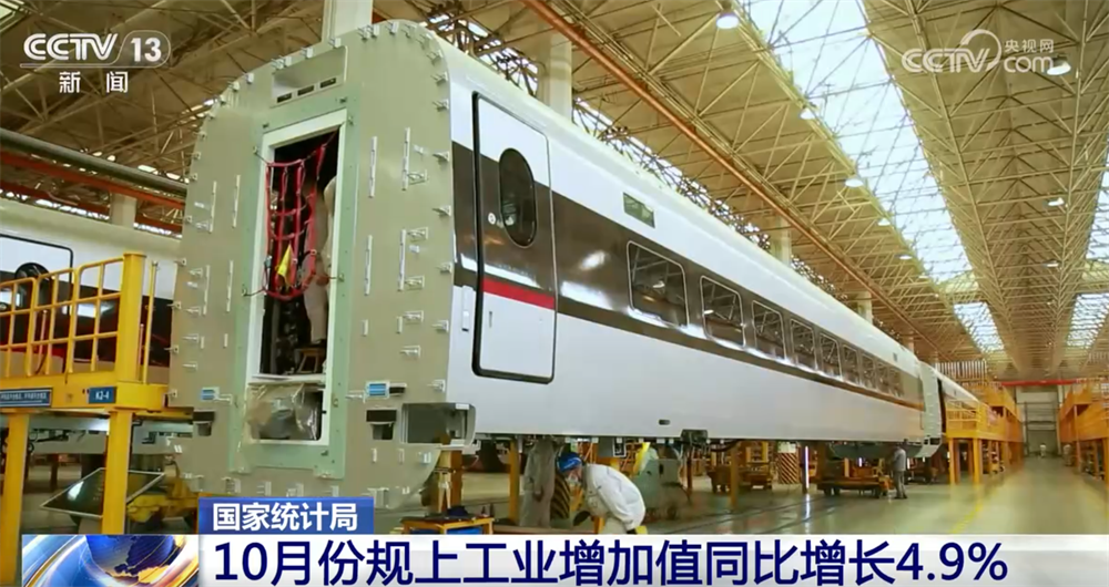 工业生产总体稳定,10月份规模以上工业增加值同比增长4.9%,继续保持总体稳定增长。其中,装备制造业增加值增长8%,明显快于规模以上工业增长,对规模以上工业增长支撑作用明显。
