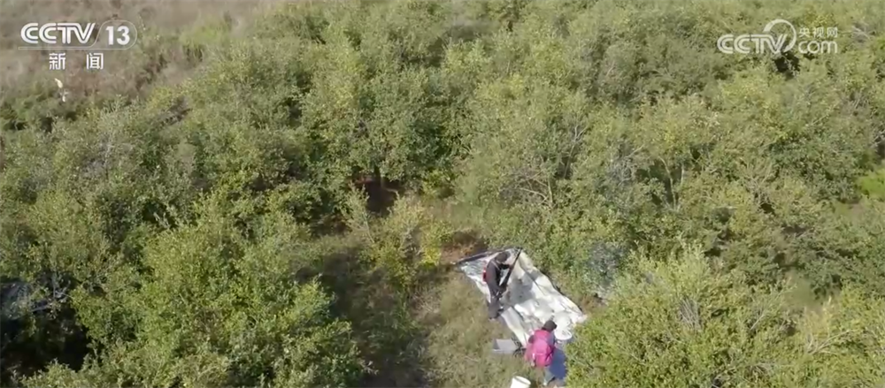 饱满的油茶果压弯枝头,采摘工人们利用便携式采收机穿梭林间,机器带动树枝高频振动,一个个油茶果便纷纷脱落到铺设好的采收网中。