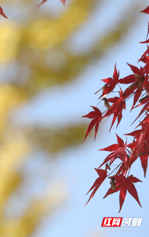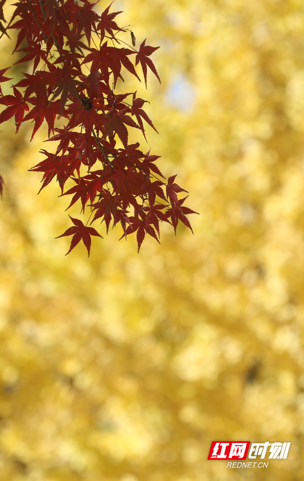 湘枫正红,银杏亮黄。满树红枫与一地金杏相遇,便有了最动人的对话。红的热烈与黄的温润相互浸染,枫借了杏的雍容,杏得了枫的明艳,在秋阳下交织成斑斓的锦缎。