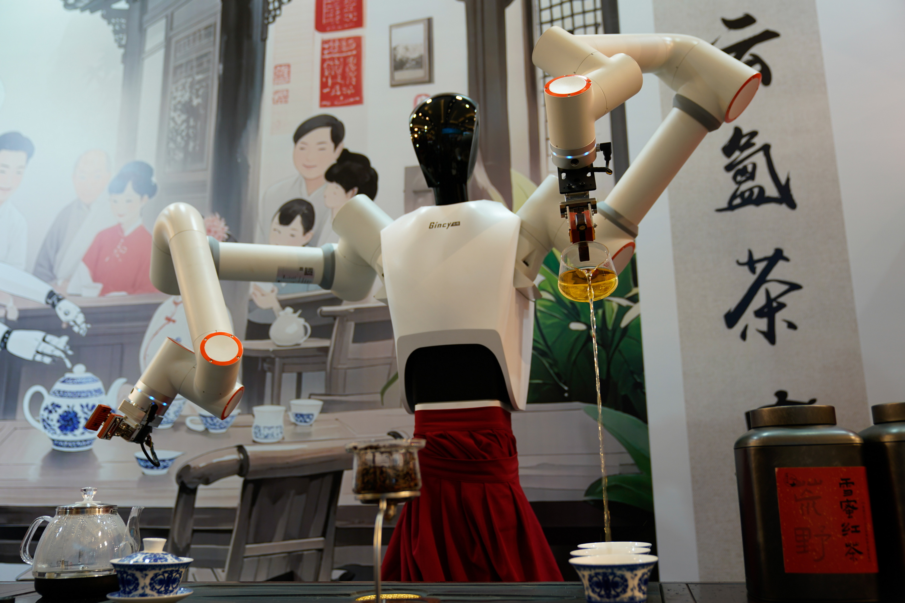2025年5月31日,在第九届中国成都国际非物质文化遗产节上,机器人茶艺师表演茶艺。5月28日至6月3日,第九届中国成都国际非物质文化遗产节在四川成都举行。