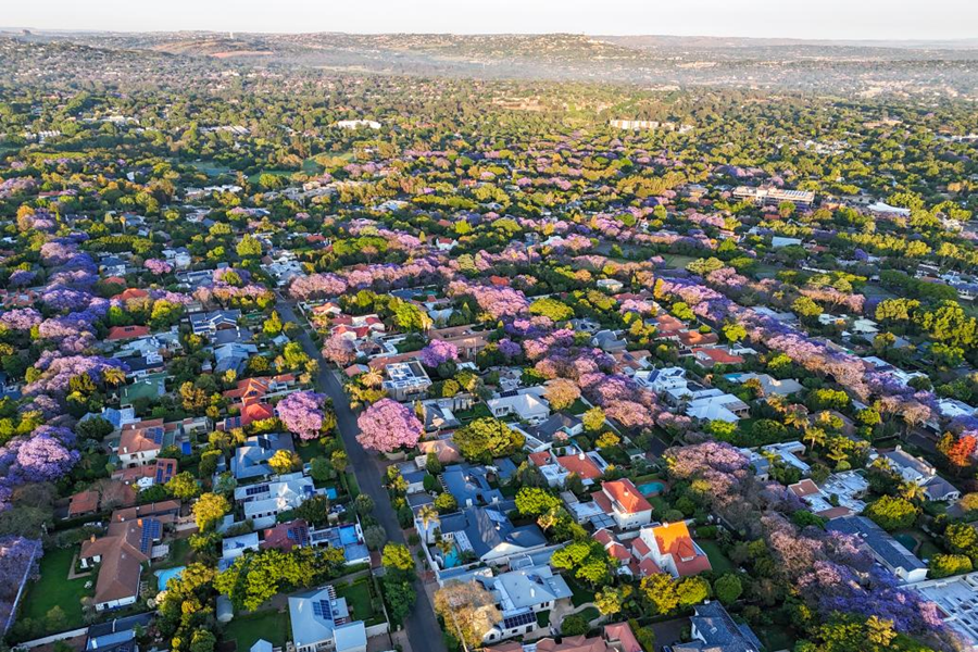 这是10月16日在南非约翰内斯堡拍摄的盛开的蓝花楹(无人机照片)。新华社发(希拉兹·穆罕默德摄)