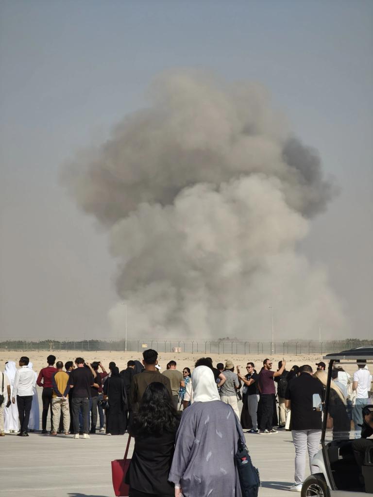 11月21日,在阿联酋迪拜,飞机坠毁现场冒出滚滚浓烟。新华社发