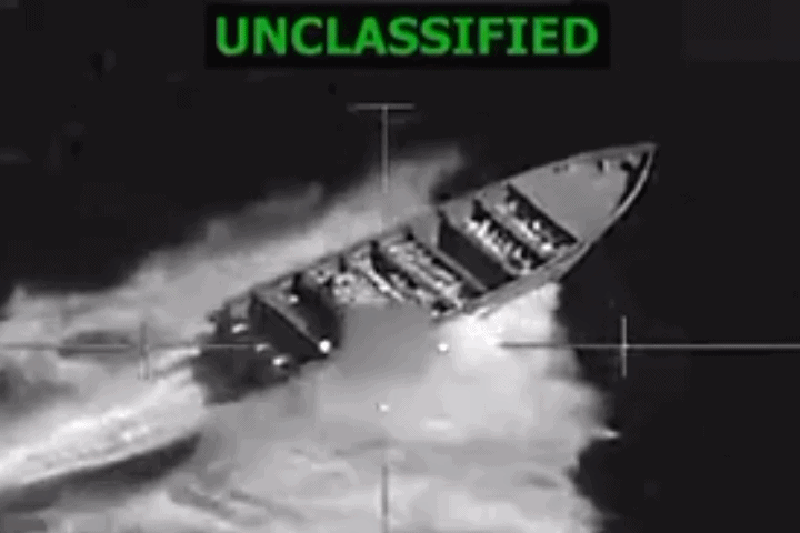 美军发布的11月15日在东太平洋打击“运毒船”画面