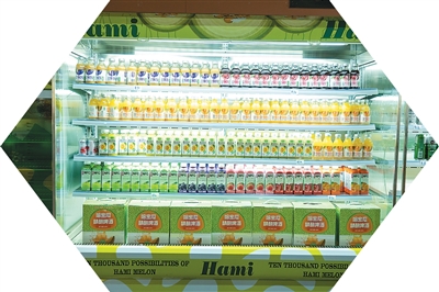 哈密瓜鲜果产业链平台联合推出的哈密瓜果汁、精酿啤酒等产品。