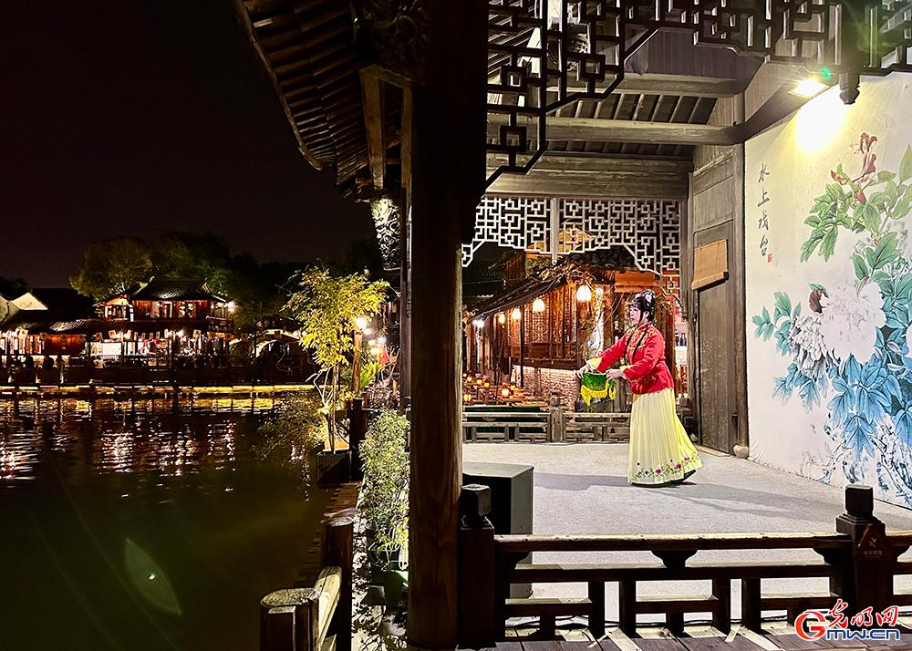 2025年11月4日,乌镇西栅景区内的乐器表演。