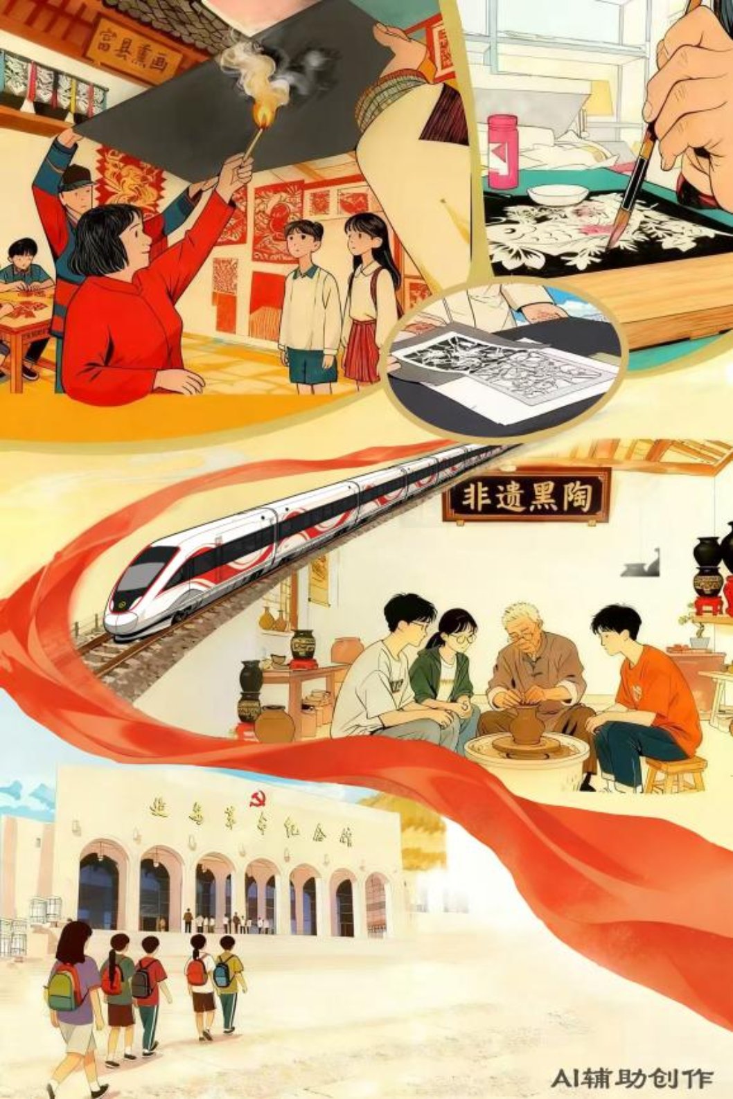 文化传承无固定模式,但离不开青春力量的激荡与赋能。从富县熏画、黑陶技艺到全国非遗瑰宝,从校园里的兴趣课堂到高铁沿线的文旅融合,期待更多青少年进一步坚定文化自信,点亮与非遗之间的“超链接”,让传统技艺“遇上”年轻创意,助力中华优秀传统文化生生不息,书写更加璀璨的时代篇章。(文字:魏平、杨晅;AI漫画:王昊)