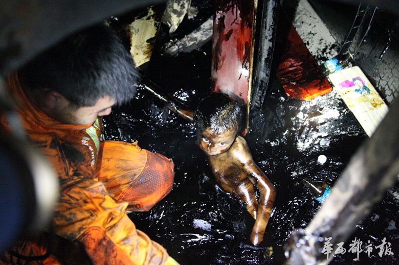 到后来,消防官兵徒手将沥青掏出一个洞,将一瓶瓶柴油往里面罐,使沥青洞变大,逐步将孩子从沥青内“抠出来”。到晚上11点,两名全身裹满黑色沥青,只露出两只眼睛的孩子终于被成功救出,送往医院治疗,所幸他们都并无大碍。