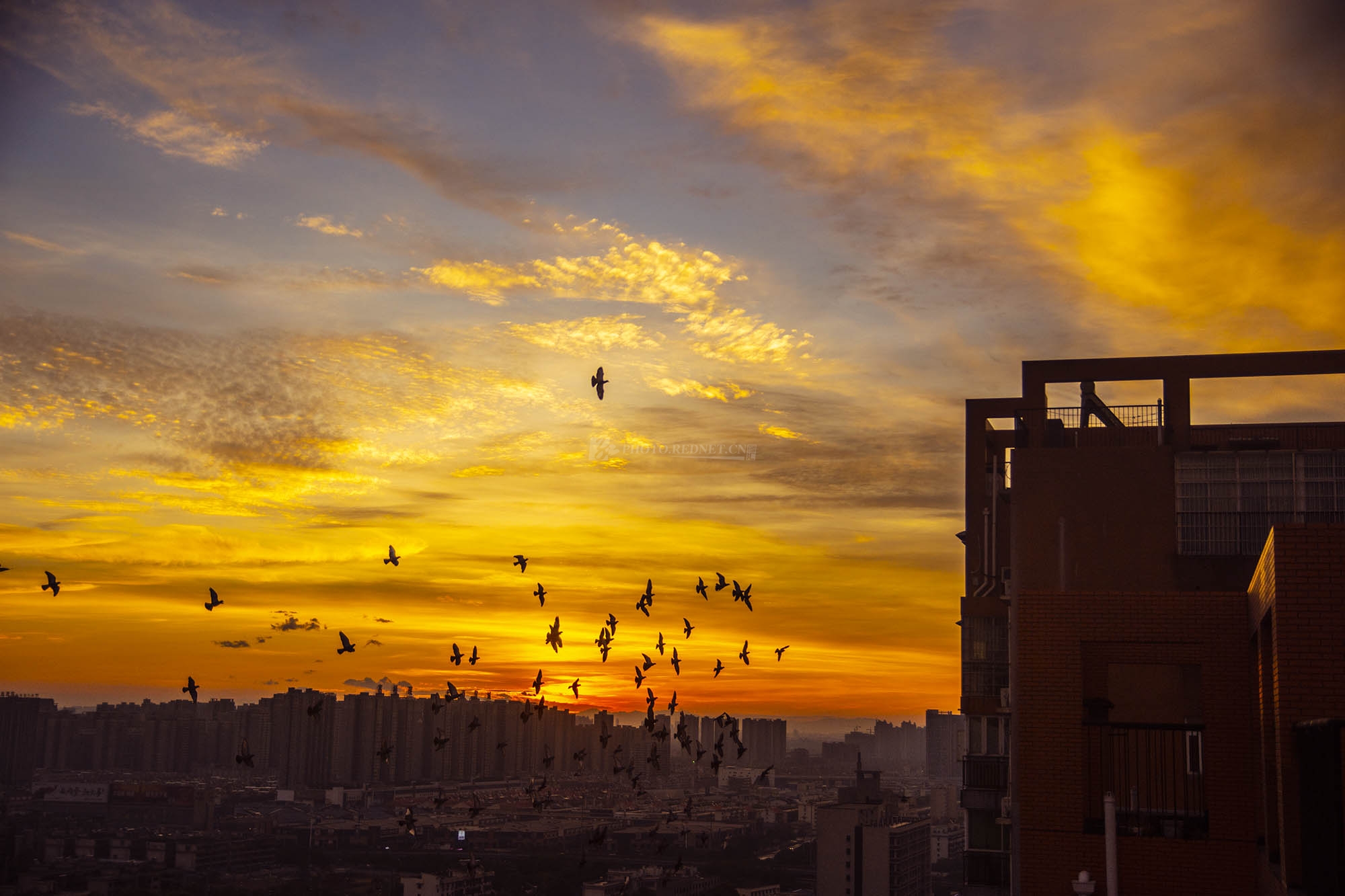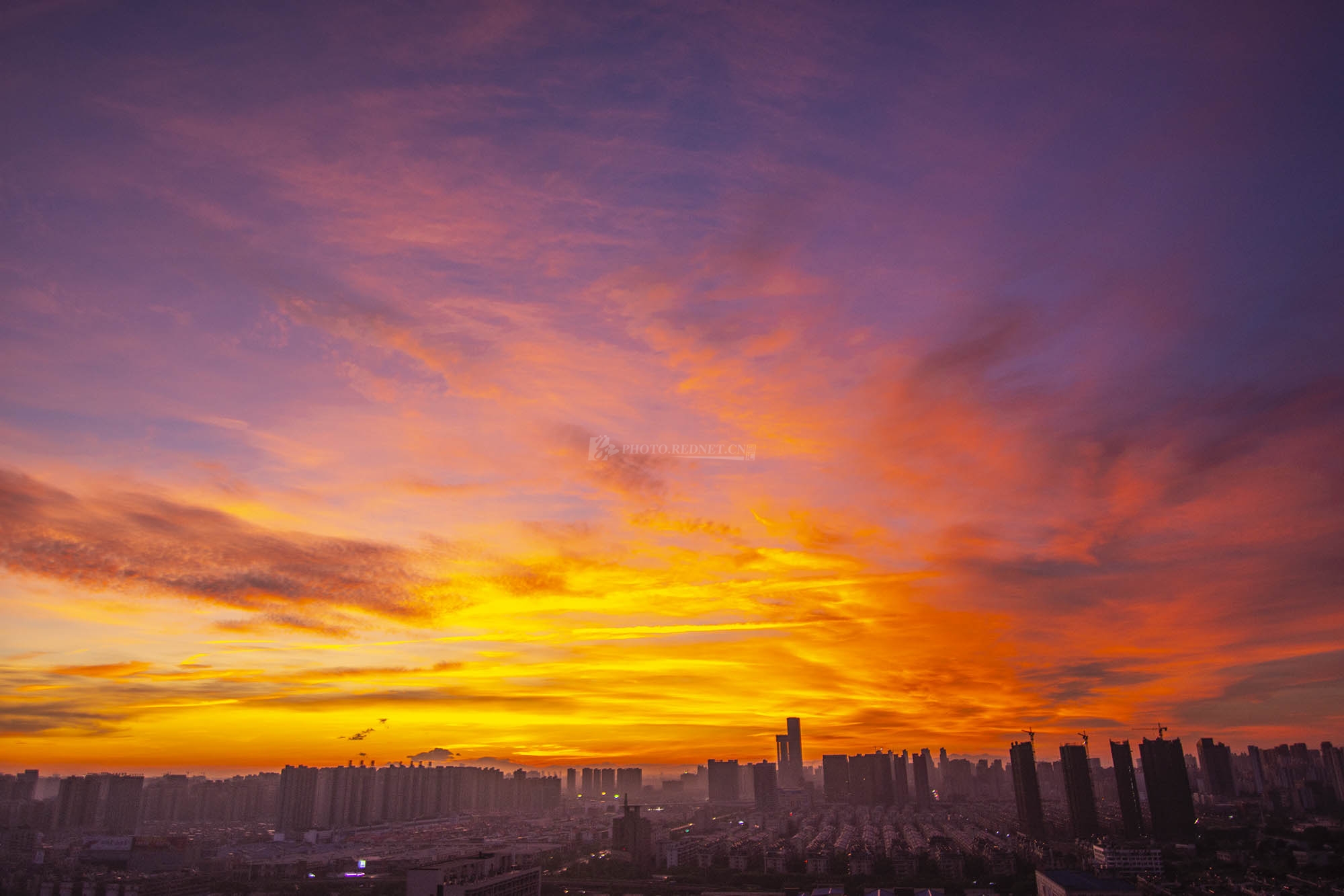 8月2日清晨,长沙朝霞浓烈如火。(图/驴眼)