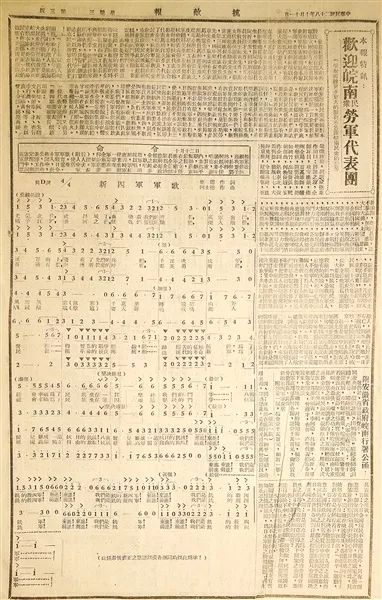 △一九三九年十月十一日《抗敌报》刊登的颁布学唱《新四军军歌》的命令及歌谱。
