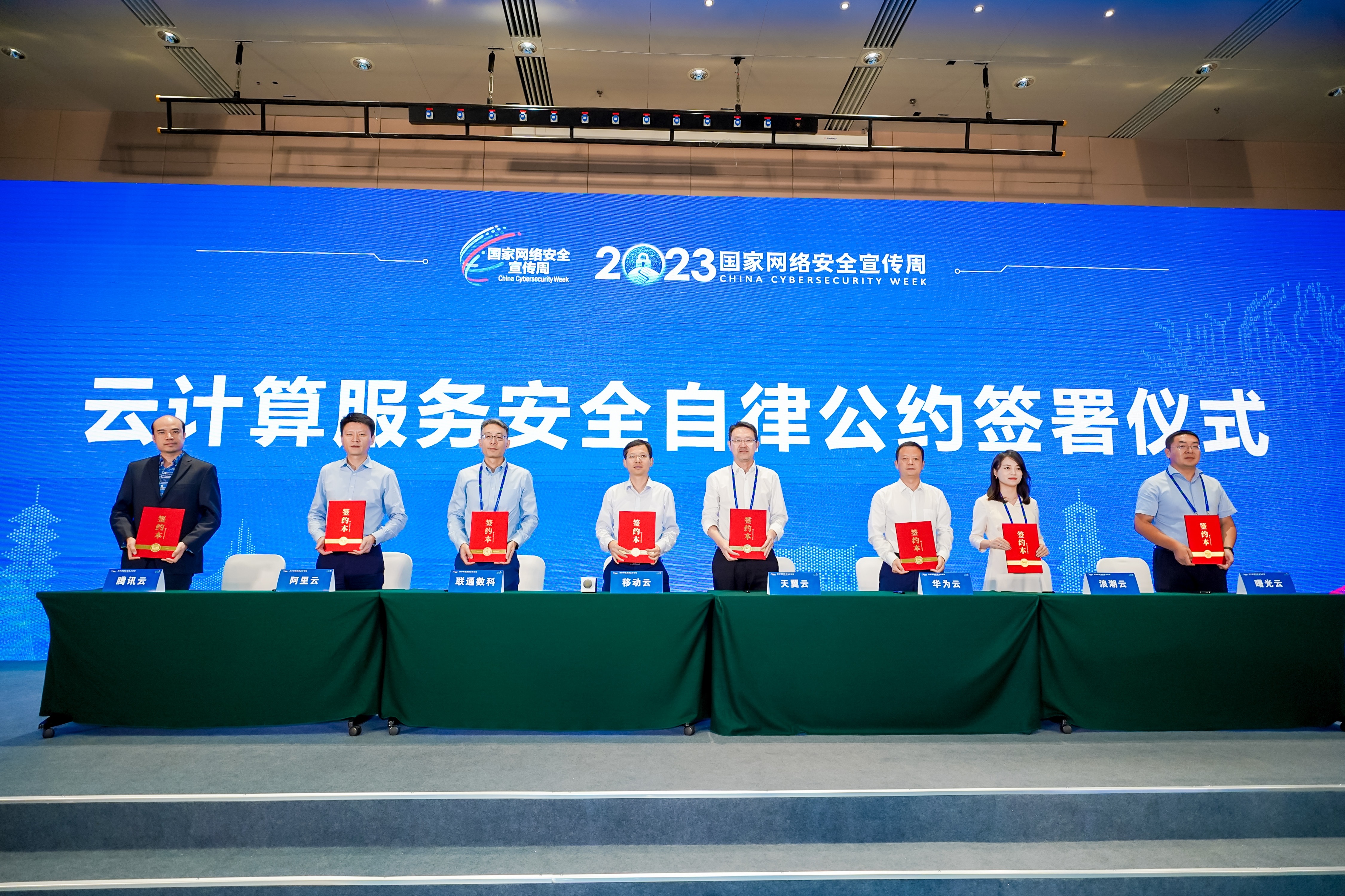 9月15日下午,8家云服务商共同签署《云计算服务安全自律公约》。(主办方供图)